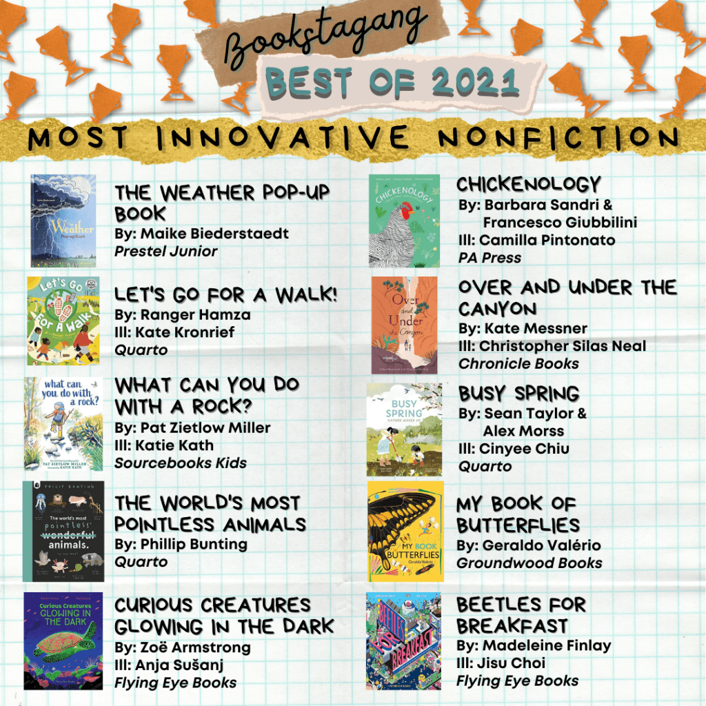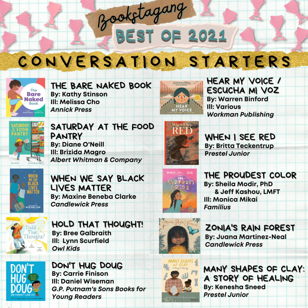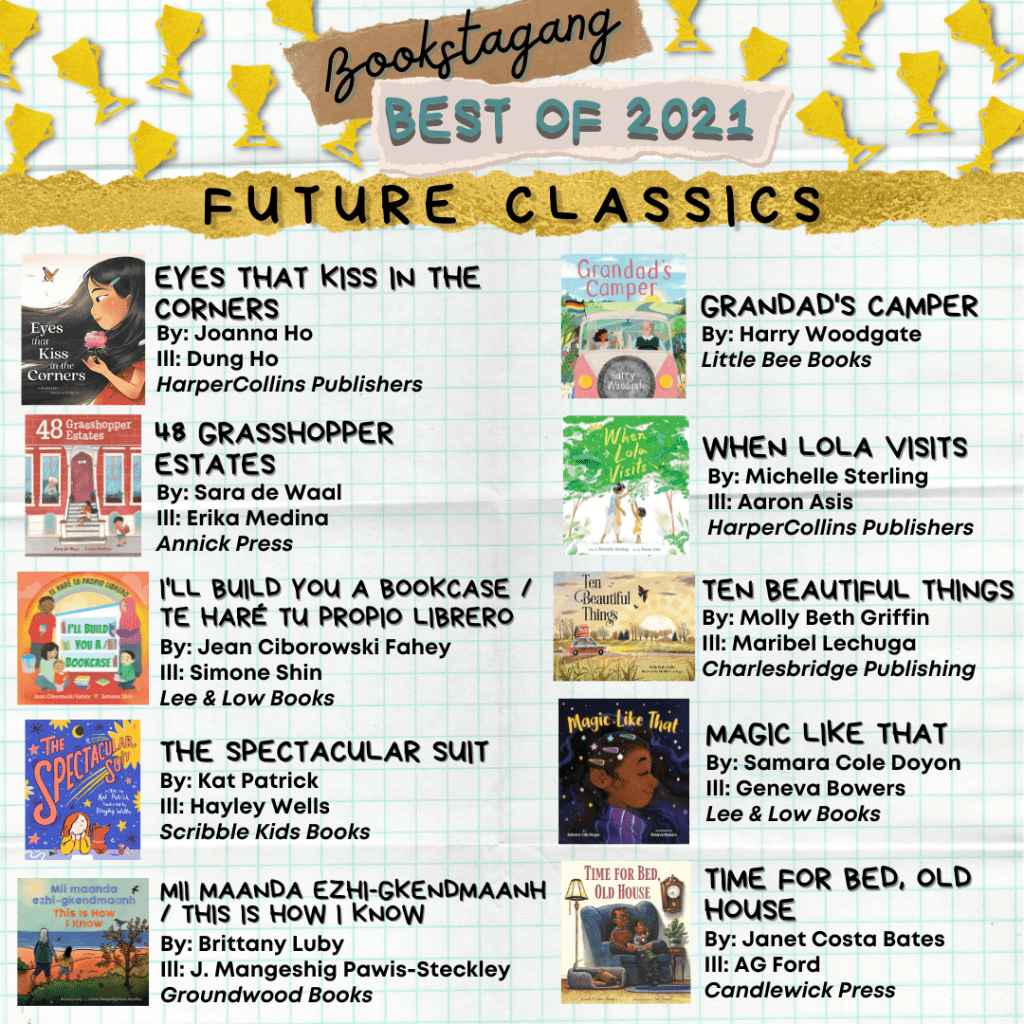 We made some important changes this year – namely our brand new final category (swipe to see it!), Conversation Starters. We agonized over how to give the proper, thoughtful space to some of our absolute favourite books this year and what has resulted is one of the most well-rounded lists of important books that you could happily batch request from the library or add to a book wishlist to help fill in so many important gaps in your home library and facilitate some big important conversations about everything from emotions, to grief, to family separation, and more.
